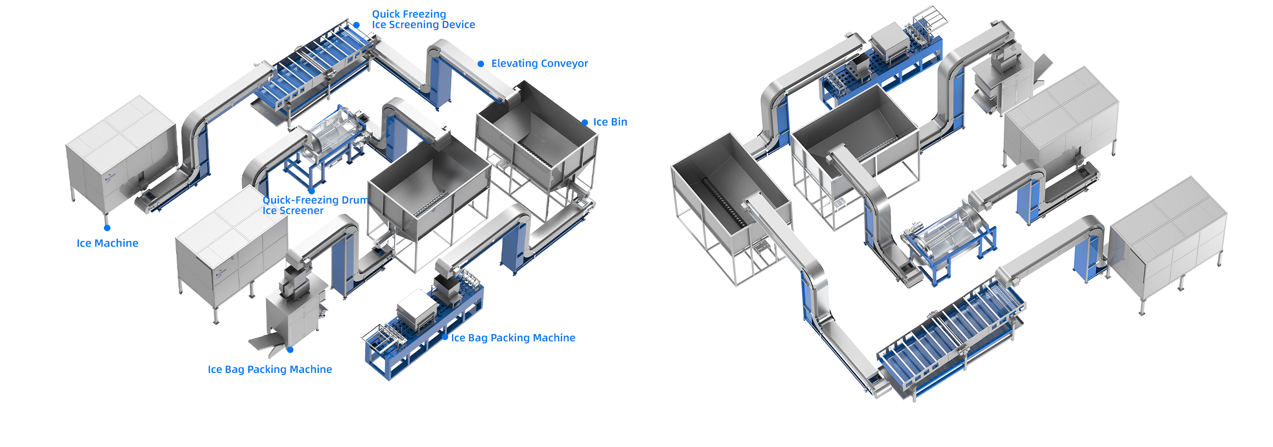 A linha de produção automatizada de copos de gelo comestível é um conjunto altamente integrado de equipamentos não tripulados, automatizados e inovadores, projetados para produção em massa, higiênicas e saudáveis e saudáveis e comestíveis plantas de gelo comestível. O sistema não inclui apenas uma máquina de gelo, mas também integra um purificador de água, uma tremonha de armazenamento de gelo, uma tela vibratória de congelamento rápido, um sistema de transportadores, um elevador de alta eficiência e uma máquina de pesagem e enfardamento automática, formando uma linha de produção totalmente automatizada da produção de gelo para embalagens.